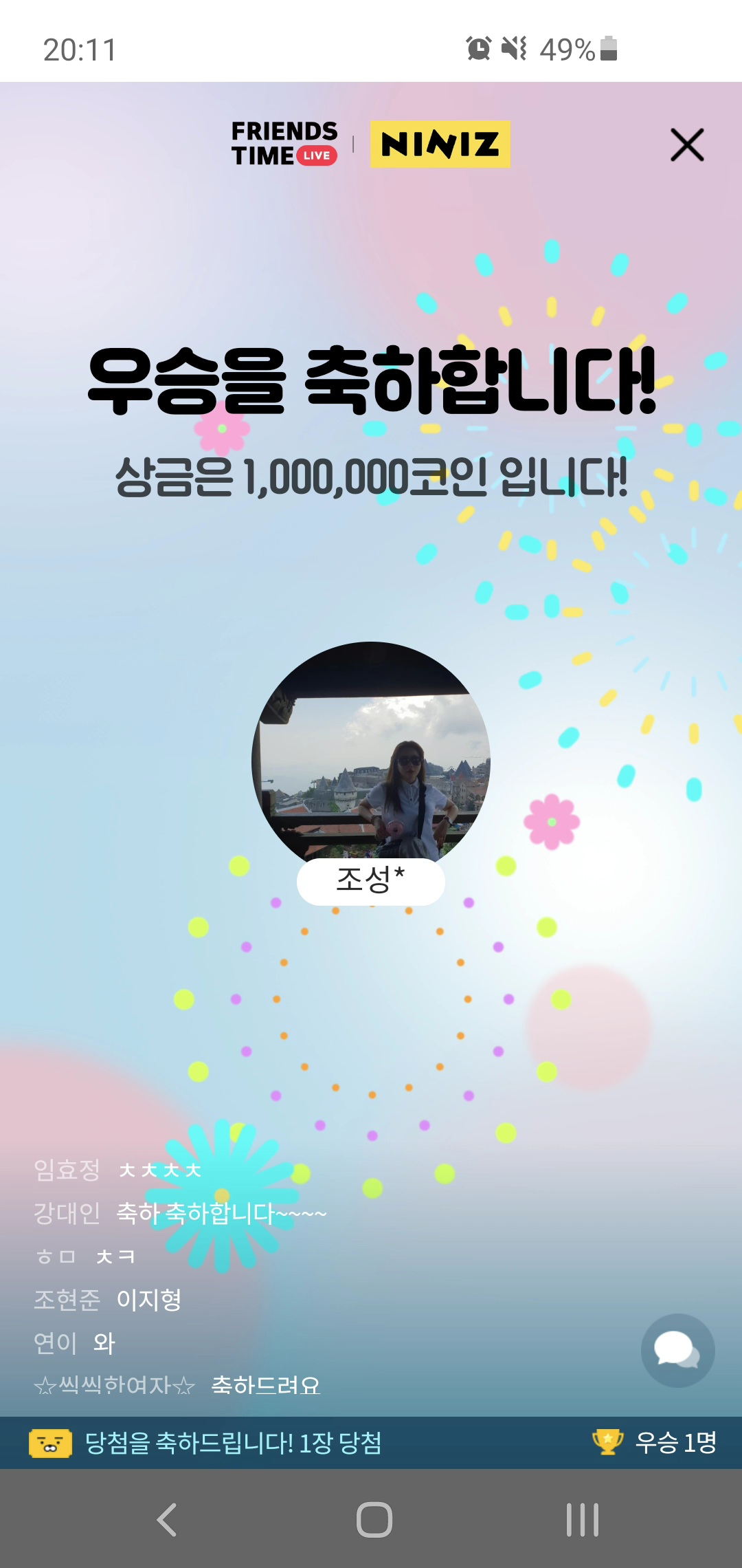 저는 실제로 100만 원을 주는 건가 궁금해서 방송을 끝까지 지켜봤었는데, 실제로 최후의 1인이 나왔고 100만 원에 해당하는 100만 코인을 받았습니다!! (꽤 부럽더라고요ㅎㅎ)