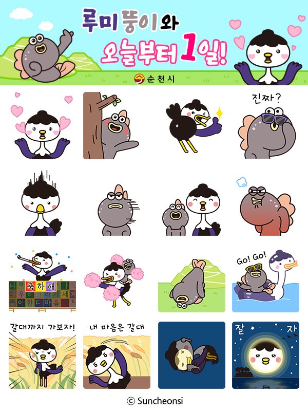 순천시 및 캐릭터 홍보를 위해 이모티콘을 직접 제작한 것은 캐릭터에 대한 애정과 열정이 느껴지는 부분인 것 같아 괜히 기분이 좋아지네요.