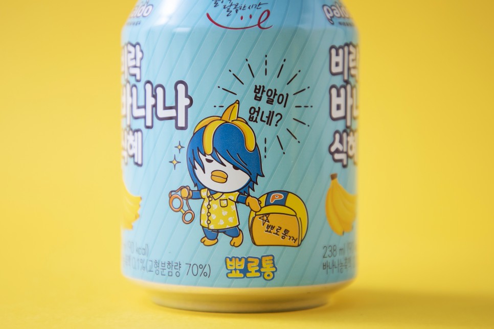 '식혜에 바나나맛을 더하면 어떨까?'라는 발상을 했다는 자체만으로도 놀라운데, 그것을 실제 제품으로 출시했다는 것에적지않은 충격을 받았다. 하지만 나에게 바나나 식혜보다 더 눈에 들어온 존재가 있었으니... 음료캔 하단에 있는 정체모를 캐릭터의 모습이었다.